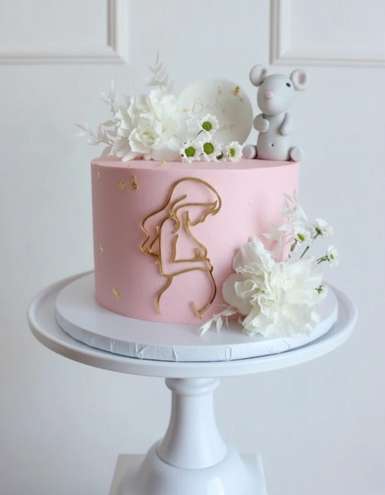 Have you ever seen a cake that felt emotional? Like, this one’s not just cake it’s a little tribute to the mom-to-be. That soft golden belly silhouette on the front? So simple, so beautiful.