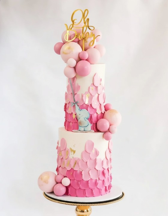 It’s technically pink, but swap the elephant for a bunny or a bear and this could work for any baby shower vibe. Earthy, dreamy, modern, beachy all of it. Definitely a cake that says “yes I went all out… and yes it was worth it.”