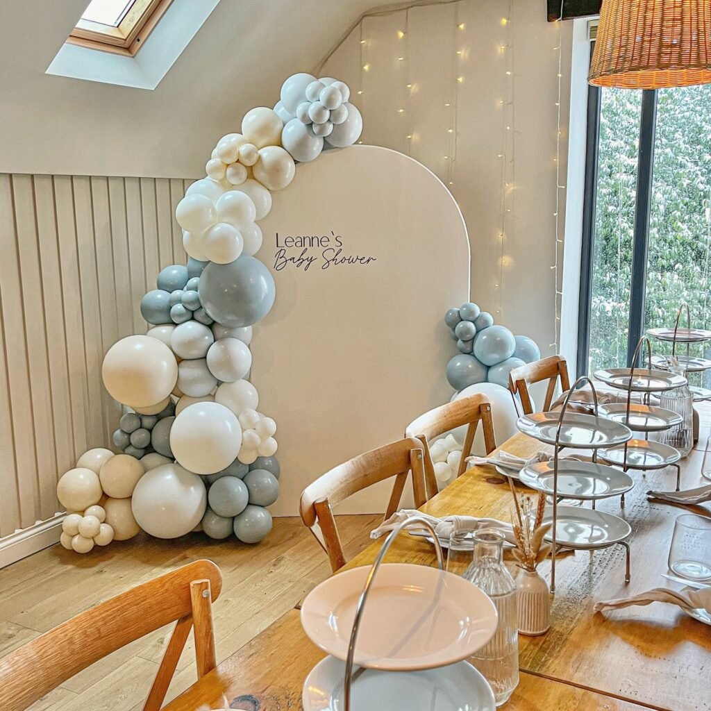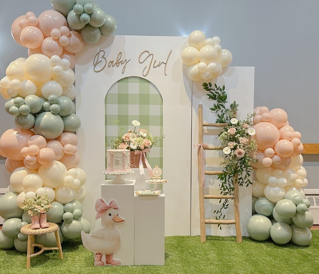 Ever seen a shower that’s this easy and still this cute? This one’s low-key perfect. A medium-sized arch, a soft balloon garland, and a sweet dining table make the space feel full enough without going overboard.