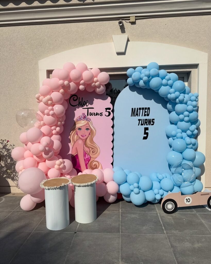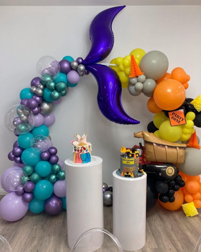 Instead of picking one design style or theme, decorate with a mix that reflects both kids’ personalities. Maybe the tables alternate colors, or the backdrop has half soccer stuff and half butterflies. Mix elements in a thoughtful, balanced way without stressing perfect symmetry. Let them help pick out the decorations too. It’s less about aesthetic perfection and more about making sure they both feel seen. The result is a celebration that reflects your family’s vibe not just a Pinterest board.